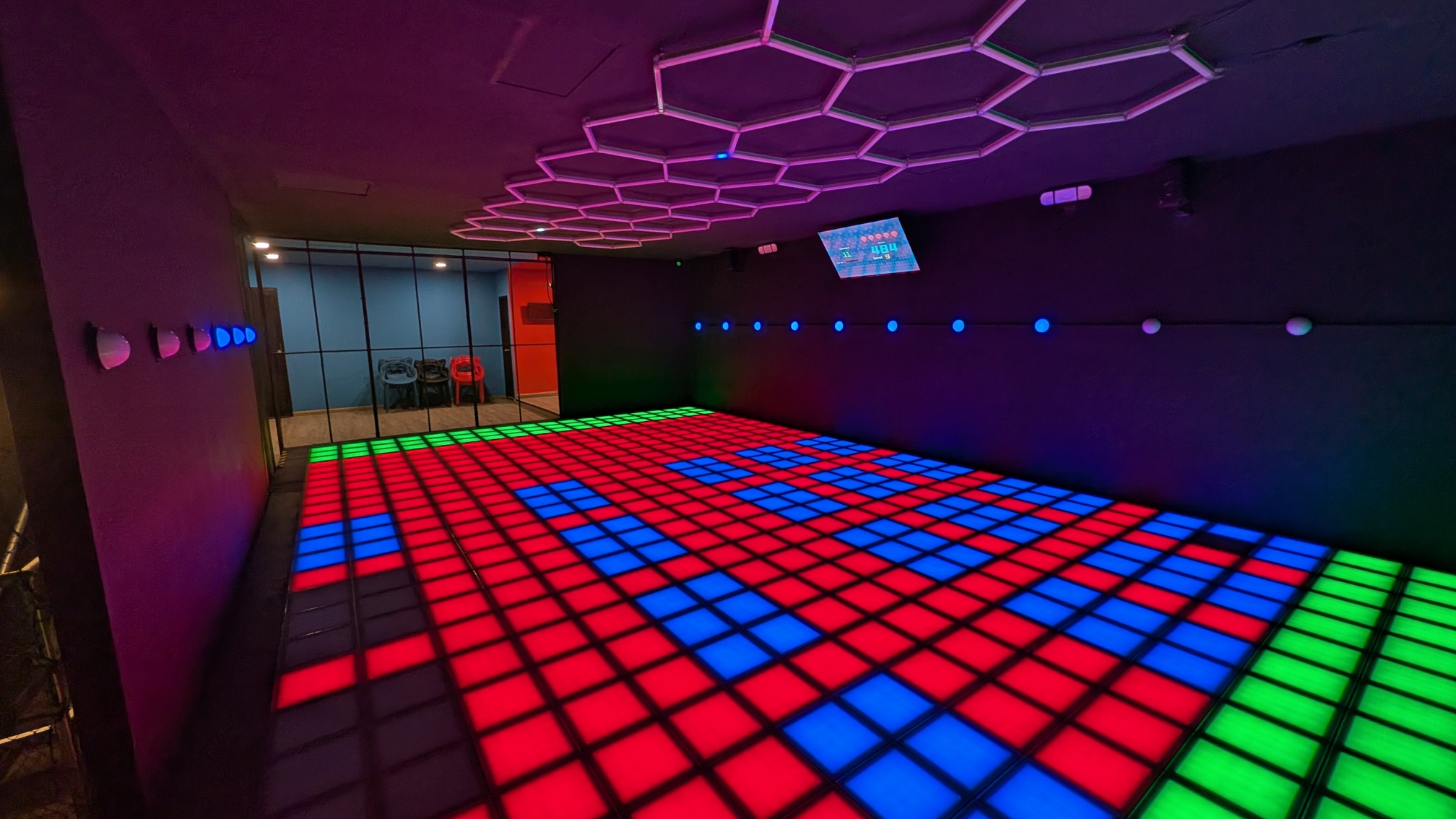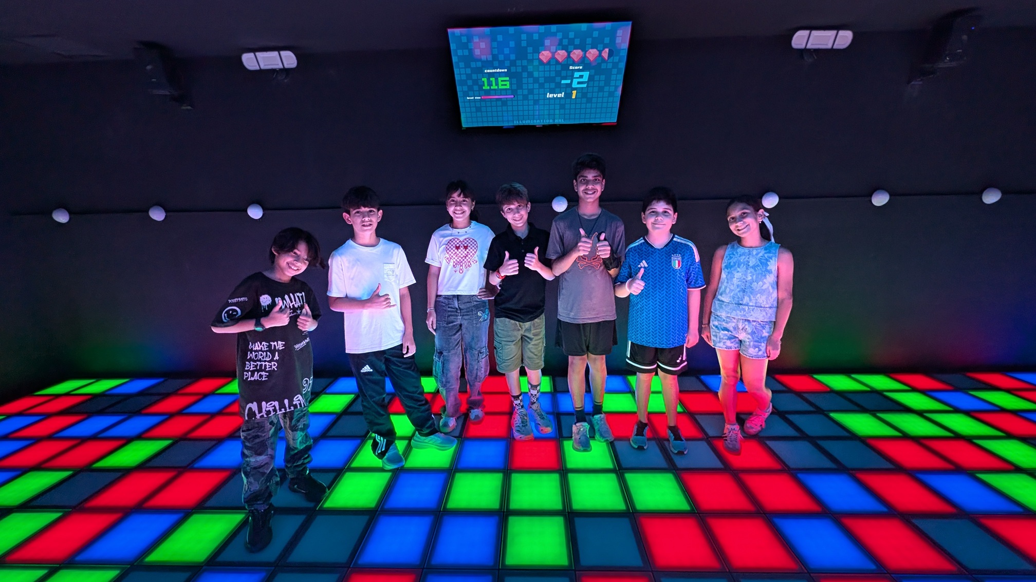 State-of-the-Art Interactive Floors 🟦🟥: We feature two game rooms equipped with smart-floor technology. You’ll literally be playing on a giant screen!